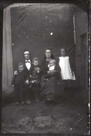 Með konu og börn. Ebeneser Guðmundsson, gullsmiður, Skúmsstaðir, Eyrarbakkahr., með konu sinni Sesselju Ólafsdóttur, og börnum þeirra, Einar Ebenesersson, Jóhanna Ebenesersdóttir, Ólafía Ebenesersdóttir og Sigvaldi Ebenesersson.