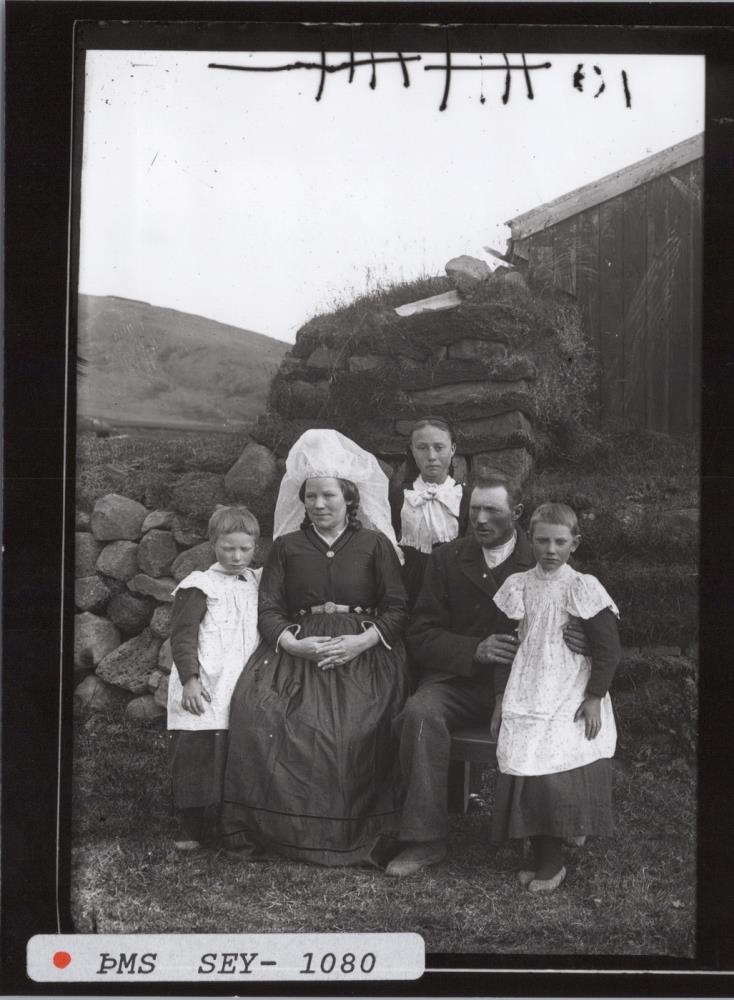 Hjónin Margrét Jónsdóttir og Einar Jónsson bóndi í Norðurgröf á Kjalarnesi með dætur sínar. Þær voru Bjarnfríður, Jórunn Jóhanna (sem stendur hjá föður sínum) og aftast í miðjunni er Guðlaug en Einar átti hana með fyrri eiginkonu sinni Jóhönnu Magnúsdóttur.