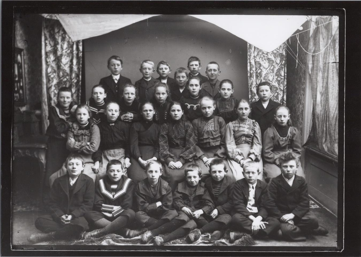 Hópmynd, 27 börn: 4 fv. fremst, Ólafur Thors, alþingismaður, 2.f.v. fremst Héðinn Valdimarsson, alþingismaður, 3. f.v. fremst, Kjartan Thors, bankastjóri, Lengst t.v. í miðröð, Soffía Siemsen Kjaran og barnaskólanemendur.
