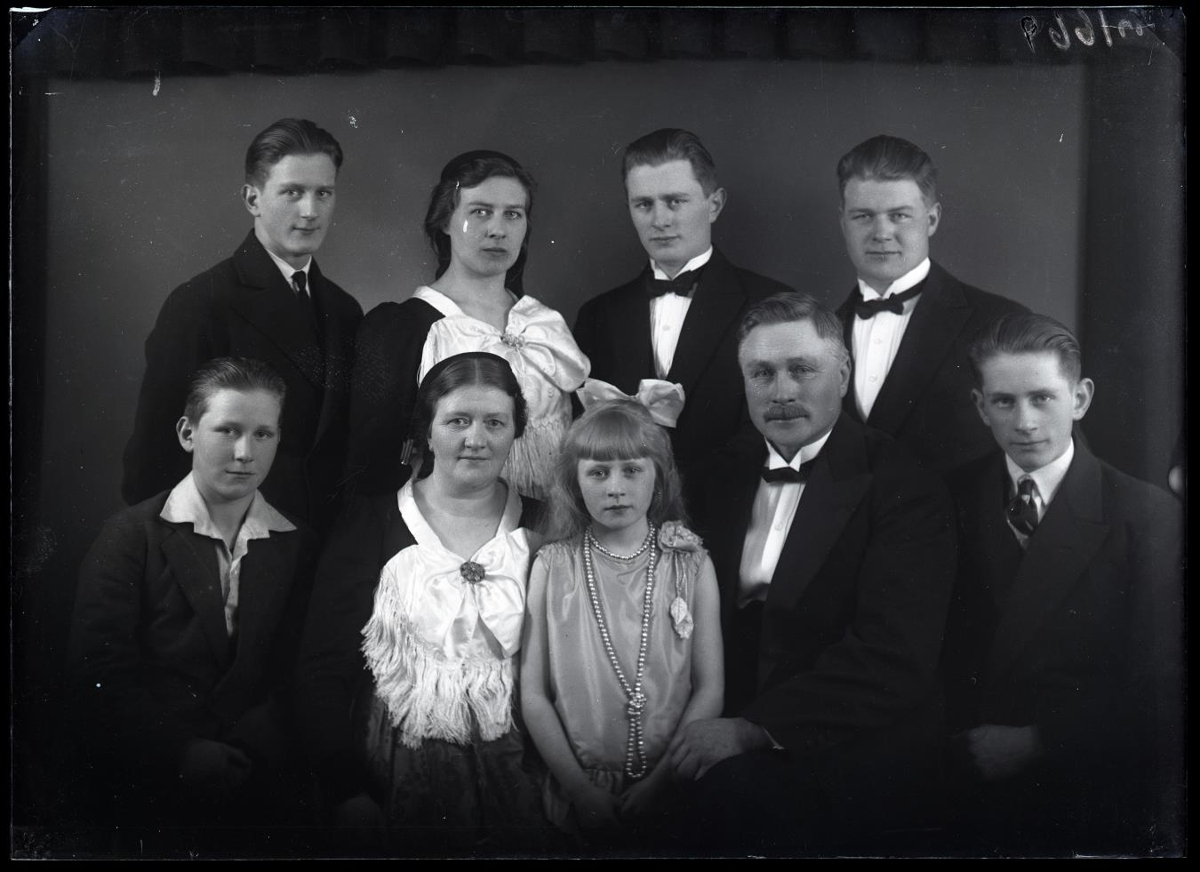 „Sigurður, Sesselja og börn. Kjartan, Magnea, Guðmundur, Helgi, Jón, Óskar og Guðrún.