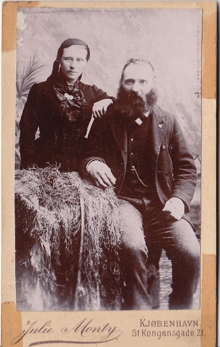 Á myndinni eru hjón af Veldingsætt, þau bjuggu þar sem nú er Austurgata 36 í Hafnarfirði.