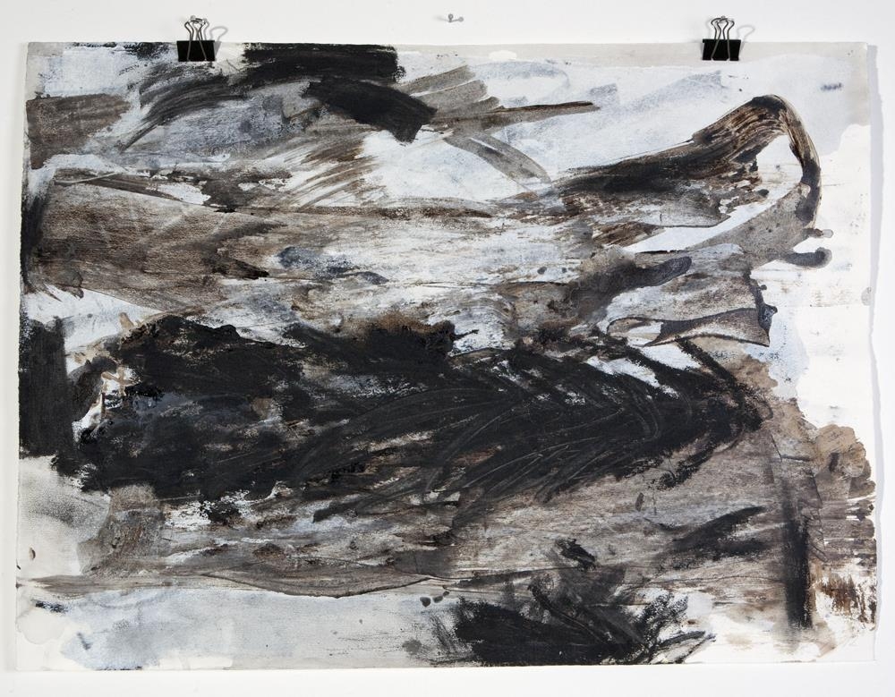 Abstrakt akrýl og vatnslitamynd. Máluð í brúnum,svörtum og bláum tónum.