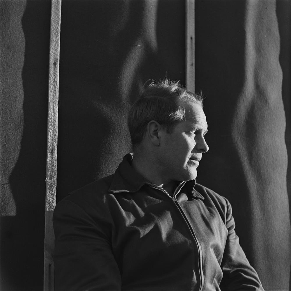 Dalasýsla. Mannvirki og starfsfólk við kolanámuna á Tindum á Skarðsströnd upp úr 1950. Október 1954. Karlmaður.