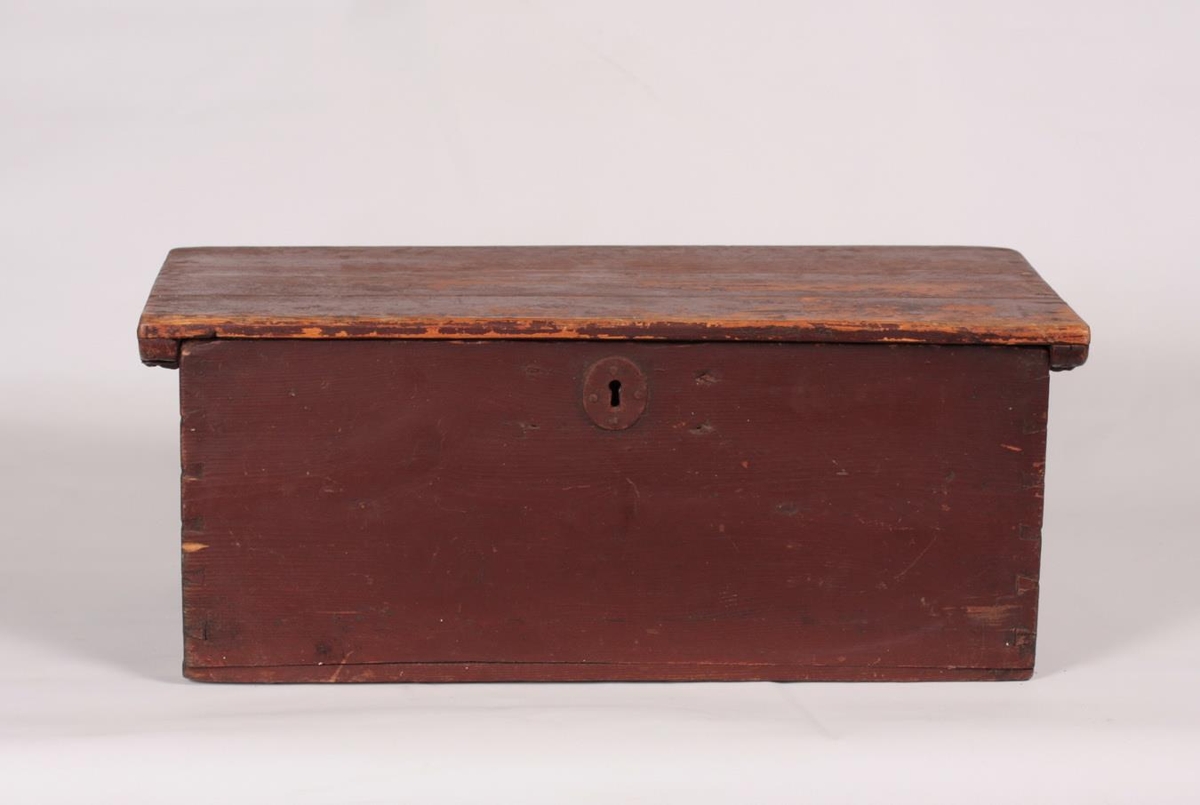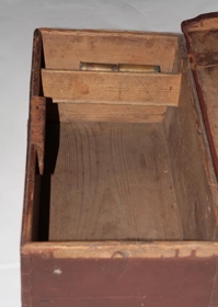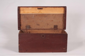 Kistill úr tré. Br. 50,5 cm út fyrir lok. H. 20 cm. Dýpt 25 cm. Lokið nær út fyrir kassann á endum og framan á. Kassinn er geirnegldur. Botninn er gerður úr einni fjöl og er negldur á. Lokið er úr tveimur fjölum. Hafði önnur brotnað og gerði Jón Kr. Jónsson við hana. Lokið er á tveimur hjörum. Skráarlauf er framan á, hringlaga. Lásinn er á en lykil vantar. Kistillinn er ryðrauður, smíðaður af Sigurði Jónssyni (1843-1909) á Sólheimum í Sæmundarhlíð. Var smíðaður handa Emilíu Kristínu Sigurðardóttur (1880-1971) á Syðri-Húsabakka. Þetta var gullkassinn hennar þegar að hún var barn. Seinna gaf hún syni sínum, Sigurði Á. Jónssyni á Syðri-Húsabakka kistilinn.