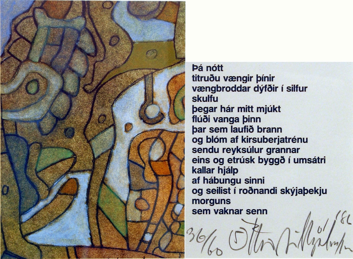 Til baka í leitVeistu meira?Vista í mitt safnPrentaAfrita slóðPanta myndNotkunarskilmálarLjóðmynd ( nr 5)= 1986, Örn ÞorsteinssonVarðveitt hjáListasafn ASÍAðrar upplýsingarTitillVerkheiti: Ljóðmynd ( nr 5)Ártal= 1986EfniLífræn efni, PappírSafnnúmerSafnnúmer A: LA-1995 Safnnúmer B: 1498Stærð24 x 18 x 0 cmAðfangategundMyndlist/HönnunUndirskrárUndirskrá: AðalskráFlokkunGrafíkÚtgáfa / Sería36 / 60