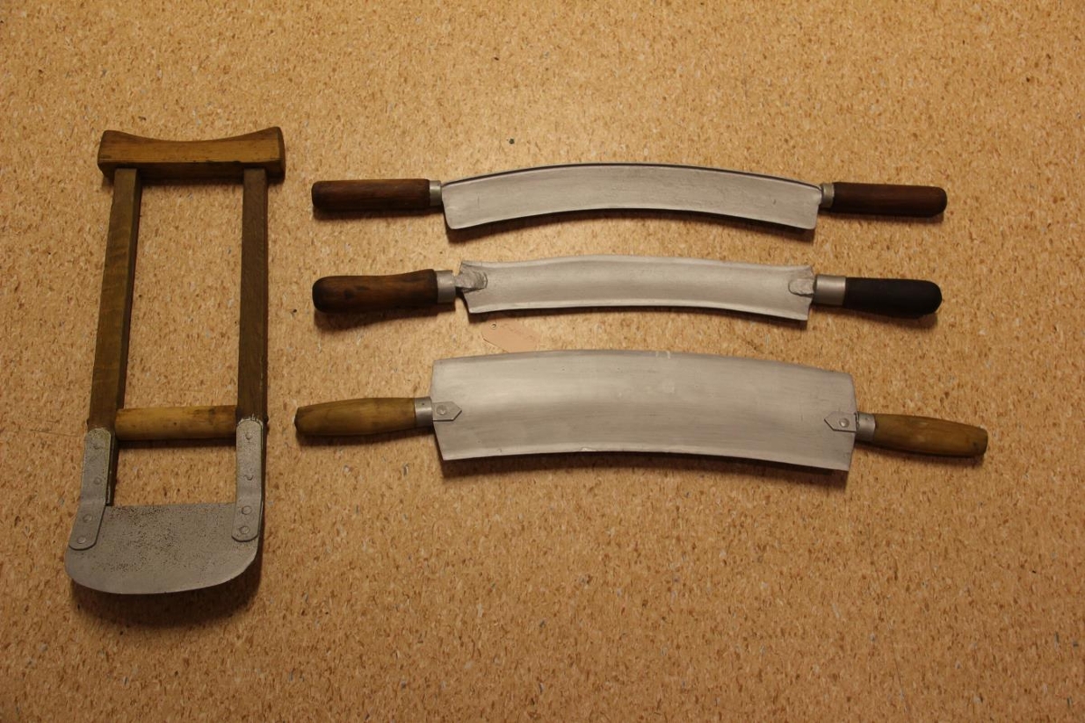 Skinnasköfurnar eru fjórar talsins af mismunandi stærð en lögun blaðsins svipuð. Þær eru ætlaðar til þess að skafa blautan holdrosa skinna.