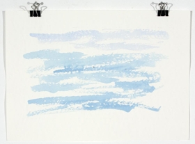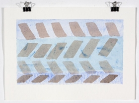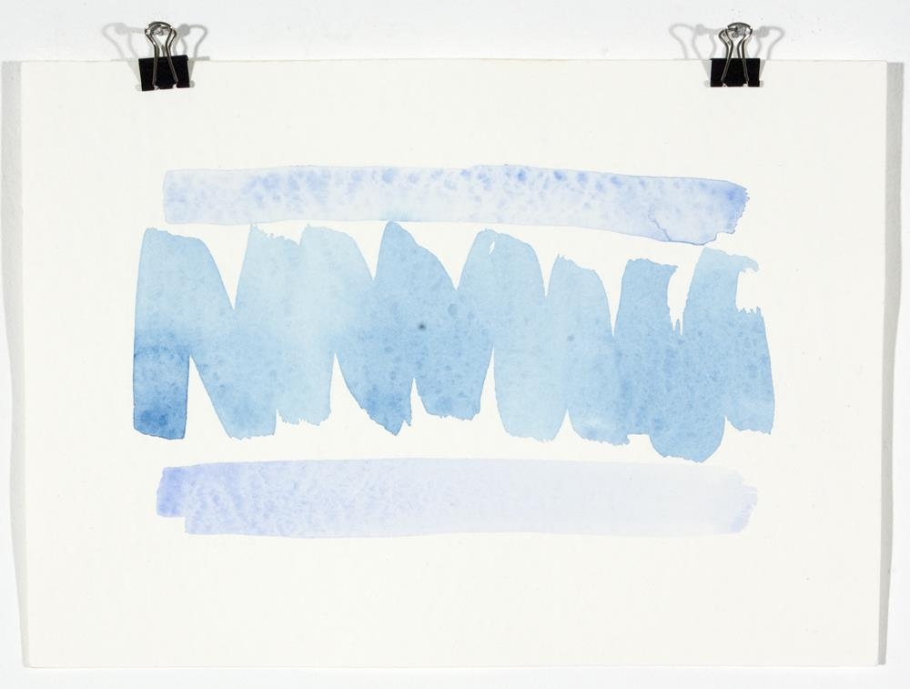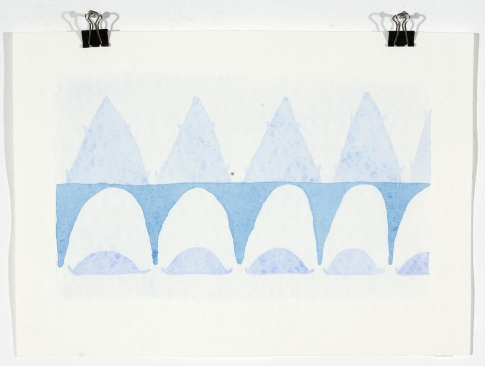 6 vatnslitamyndir á hvítan þykkan pappírMyndefni ýmist geometrískt eða abstrakt - blá- og brúntóna