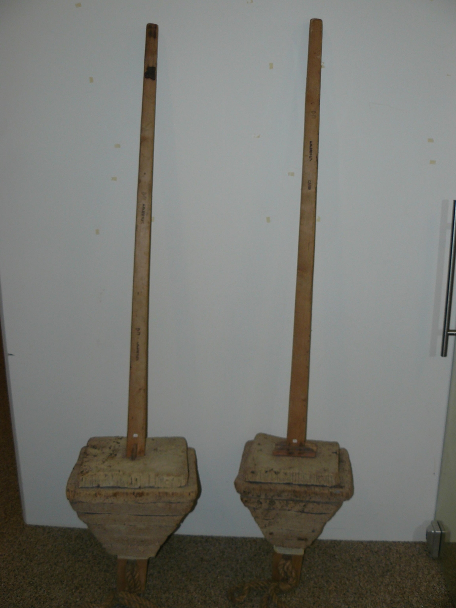 Tvær baujur úr við og korki fyrir þorskanet merktar Þ.B. Akurhúsum. Þessir munir komu úr dánarbúi Þorláks Benediktssonar kaupmanns og konu hans Jórunnar Ólafsdóttur frá Akurhúsum í Garði. Þorlákur rak verslun í Akurhúsum í frá 1921-1972. Gefandi: Ingibjörg Gísladóttir, fósturdóttir Þorláks og Jórunnar (1930 - 2022).