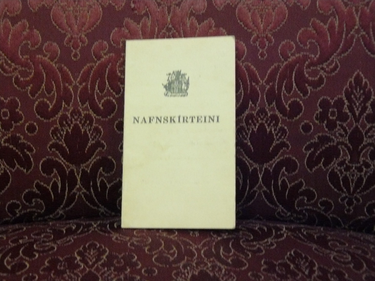 Nafnskírteini frá 1947 fyrir Svanhildi Ólafíu Guðjónsdóttur (1907 - 1993) frá Réttarholti í Garði. Gefandi munar: Eiður Guðnason fyrrum fréttamaður, systursonur Svanhildar.
