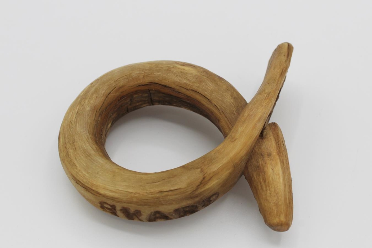 Hornhagld eða gifthagld úr kindahorni. Búið er að grafa orðið „Skarð" og uphafsstafina „MJ" sem er skammstöfun föður Kristrúnar Matthíasar Jónssonar bónda í Skarð,i Gnúpverjahreppi og síðan frá 1936 á Fossi í Hrunamannahreppi.