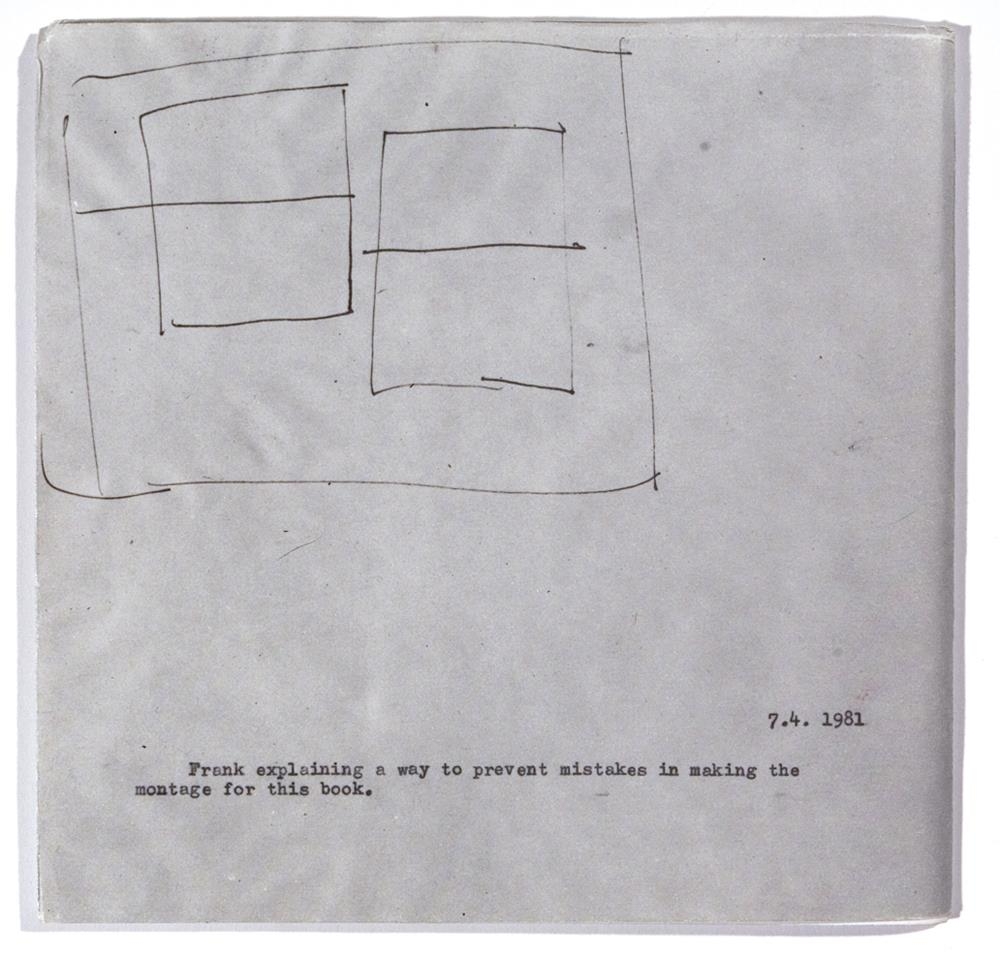 Bókverkið er 18 bls. Útskýringar vina og listamanna í teikningum í tengslum við umræðuefni, með útskýringartexta og dagsetningu samræðna. Kápan er laus ljósgrá með grófri teikningu - þ.s. 'Frank' útskýrir hvernig koma megi í veg fyrir mistök í uppsetningu bókarinnar.