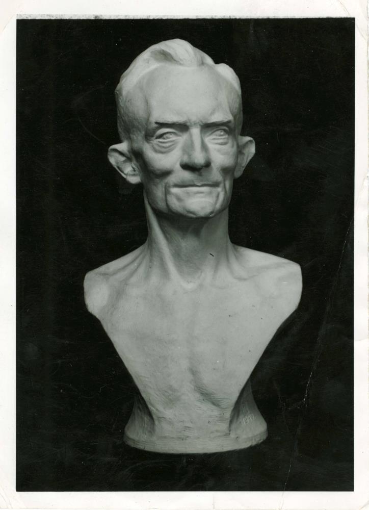 Páll Sveinsson yfirkennari. Bústa af karlmanni. Gifsmynd. Eftir Ríkarð Jónsson. Birtist í bókinni Ríkarður Jónsson. Tréskurður og mannamyndir, s. 154.Tvær myndir.