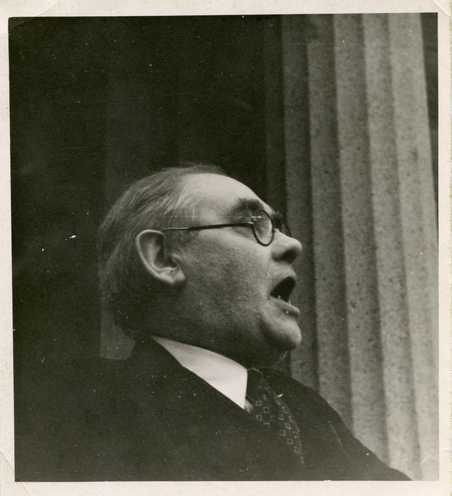 Sigurjón Á. Ólafsson formaður Sjómannasambandsins flytur ræðu 1. maí 1946. Sjá Alþýðublaðið 3. maí 1946, s. 2.