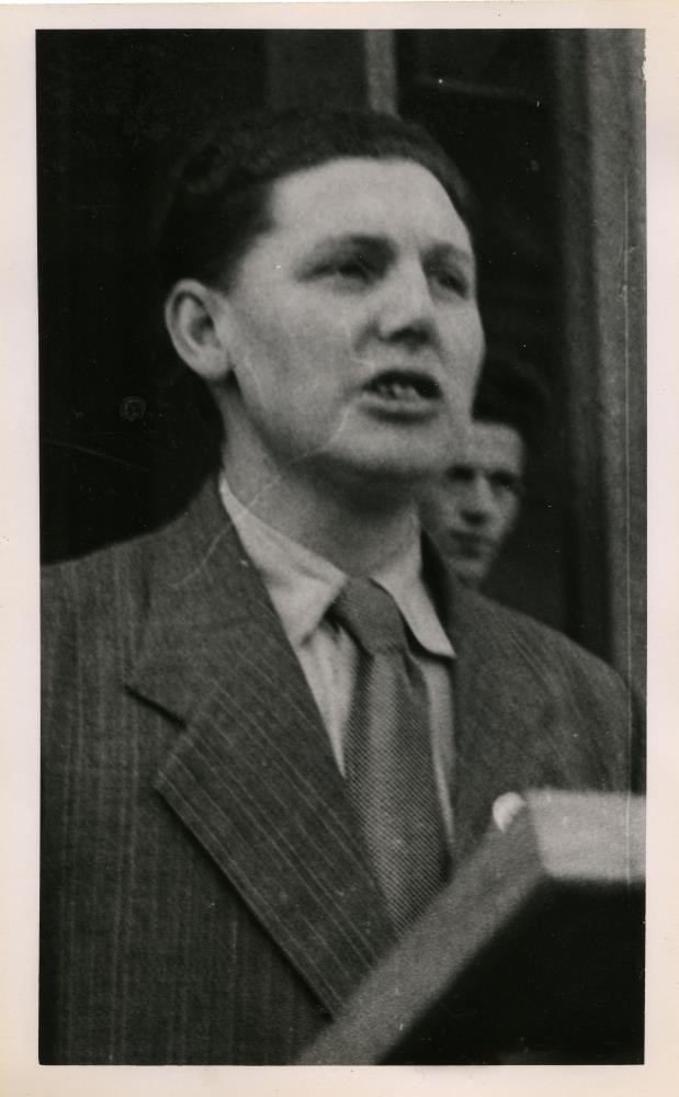 Snorri Jónsson forystumaður Járnsmiðafélagsins heldur ræðu 1.maí um 1945.
