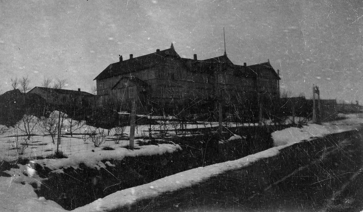 Akureyri maí 1924 Menntaskólinn ( þá Gagnfræðiskólinn), og bakatil íþróttahús ( fjósið ).