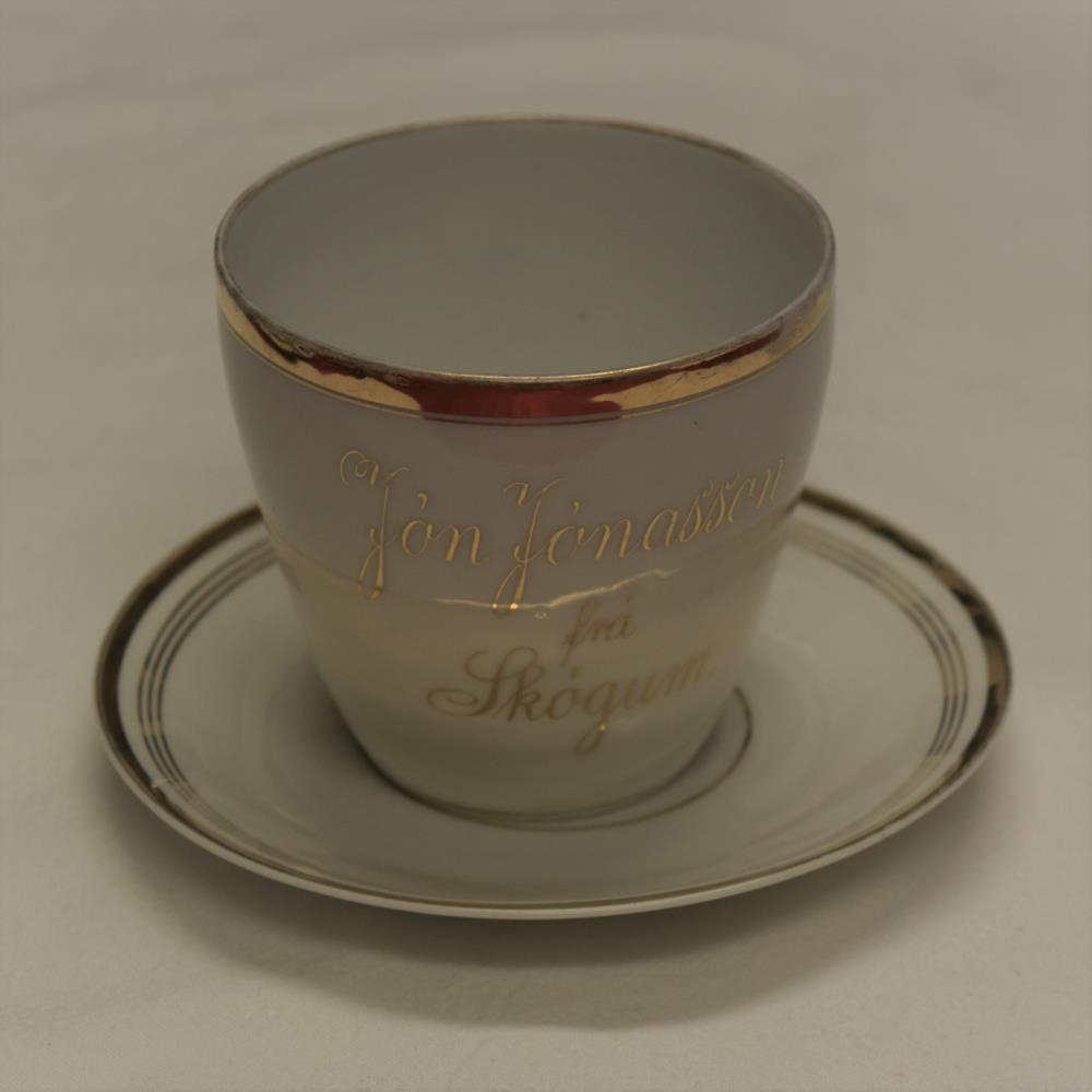 Til baka í leitVeistu meira?Vista í mitt safnPrentaAfrita slóðNotkunarskilmálarBollaparVarðveitt hjáByggðasafn DalamannaKaffibolli með gylltu letri: Jón Jónsson frá Skógum. Aðrar upplýsingarJón Jónasson, Notandi Gefandi: Sigríður JónsdóttirSafnnúmerSafnnúmer A: 1472 Safnnúmer B: 1987-1-11StaðurStaður: Skógar, 371-Búðardal, DalabyggðAðfangategundMunirUndirskrárUndirskrá: Almenn munaskráEfnisorð / HeitiEfnisorð: Bollapar Efnisorð: Kaffibolli Efnisorð: UndirskálUpprunastaður65°7'14.1"N 22°7'32.9"W