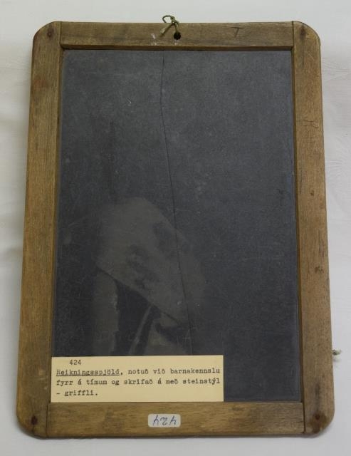 Spjöldin eru tvö og voru notuð við barnakennslu fyrr á tímum og skrifað á með steinstýl - griffli.