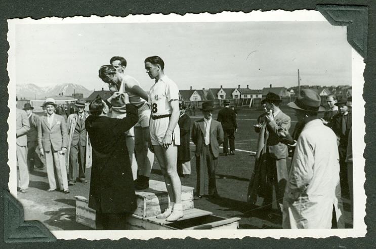 Verðlaunaafhending á Melavellinum. Brynjólfur Ingólfsson lengst til hægri á verðlaunapallinum.