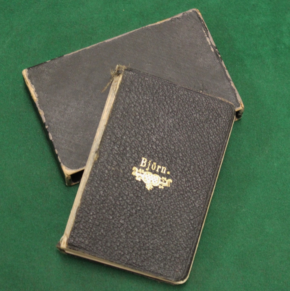 Bókina fékk Björn í fermingargjöf og er gyllt á framhlið kápu nafnið Björn.