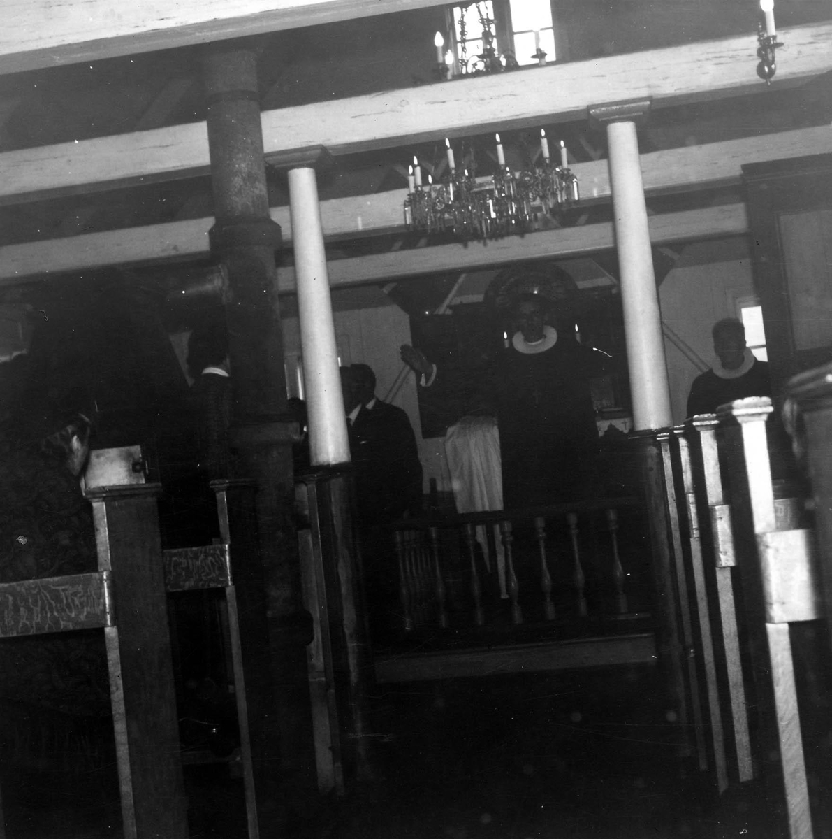Sigurbjörn Einarssonbiskup og séra Benjamín Kristjánsson vísitera í Hólakirkju 1965.