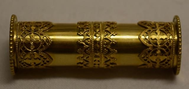 Skotthúfuhólkur úr eigu Valgerðar Jensdóttur frá Hóli í Hvammssveit.
