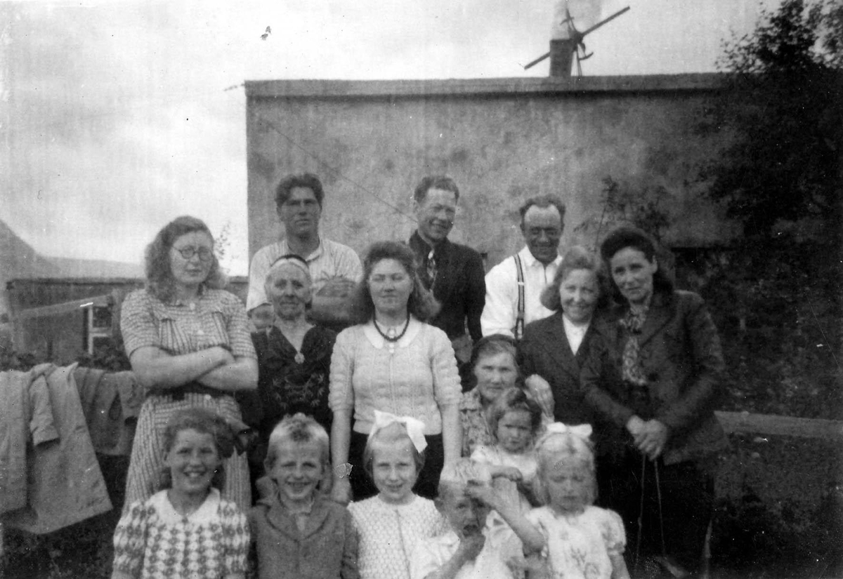 Í heimsókn á Torfufelli. Hópmynd tekin við grindverkið í blómagarðinum sunnan við bæinn.