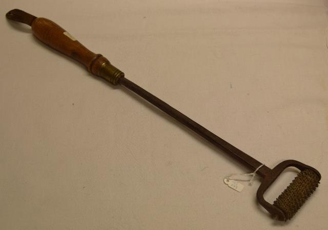 Takkarúlla. Hluti af söðlasmíðaáhöldum Guðjóns Ásgeirssonar (1875-1970) söðlasmiðs og bónda á Kýrunnarstöðum, Hvammssveit, Dalasýslu.