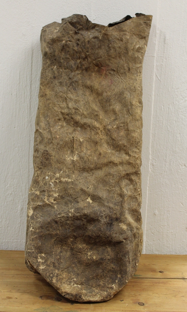 Kaffiskjóða úr eltiskinni. Var notuð til að flytja í kaffið úr Stykkishólmi í Purkey.