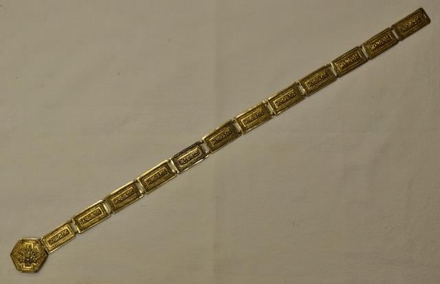 Stokkabelti frá skautbúningi Valgerðar Jónsdóttur á Staðarfelli. Fermingargjöf til Valgerðar Jensdóttur á Hóli í Hvammssveit 20. maí 1894.