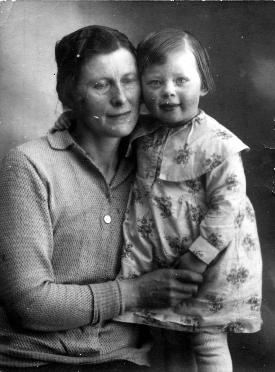 Geirlaug Jónsdóttir frá Hólum í Eyjafirði heldur á ungri telpu.