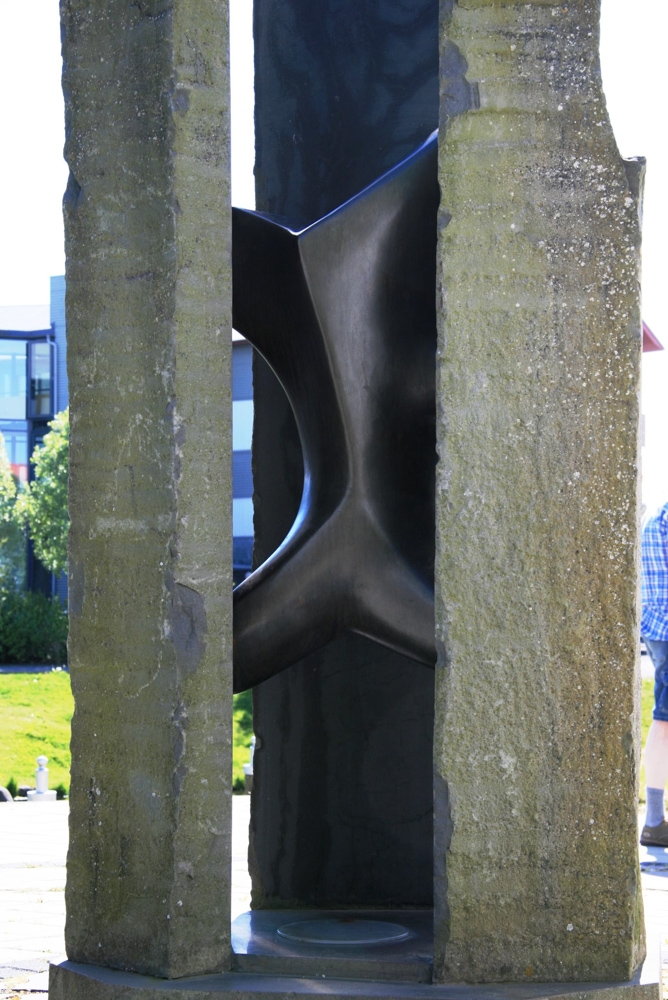 Verkið samanstendur af þremur grjótsúlum en fyrir miðju þeirra og á milli er bronsverk sem er órætt form sem teygir anga sína í súlurnar þrjár. Verkið stendur á lágum fótstalli úr steini, en í miðju hans er lýsingargluggi. Í kringum fótstallinn er verkið afmarkað með hellum. Næst fótstallinum eru dökkar náttúruhellur og svo dökkir kantsteinar sem saman mynda innri hringinn, en fjær eru ljósar gangstéttarhellur sem mynda ytri hringinn.