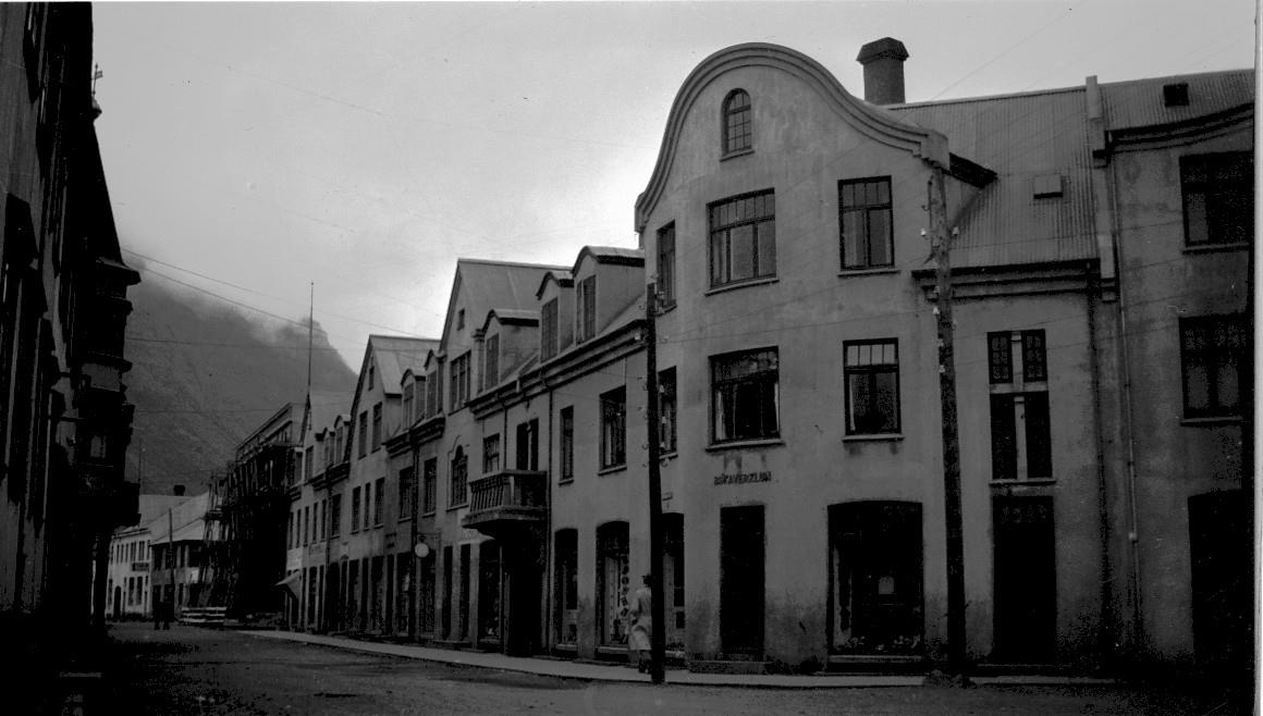 Hafnarstræti 2 við Silfurtorg á Ísafyrði.Bókhlaðan byggt 1928(í Jugend-stíl) arkitekt Jón H.Sigmundsson.