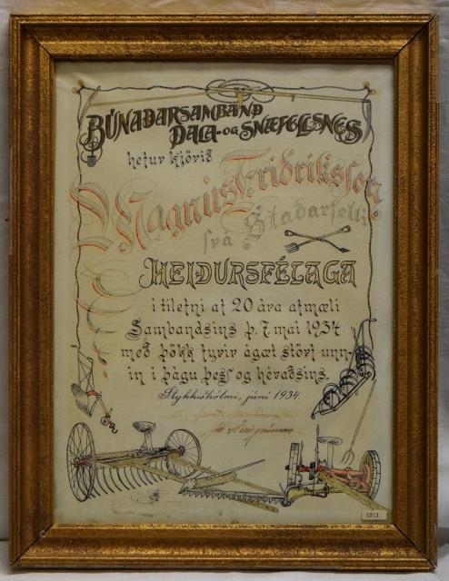 Heiðurfélagaskírteini Magnúsar Friðrikssonar frá Búnaðarsambandi Dala- og Snæfellsness.
