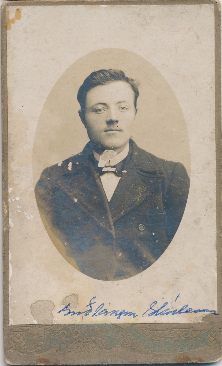 Ljósmynd úr fórum Snorra Ólafssonar frá Selfossi. Á myndinni er Guðlaugur Skúlason frá Símonarhúsum á Stokkseyri. Síðar í Reykjavík.