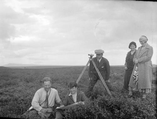 Fólk 1) væntanlega Jón Víðis 2) Geir Agnar Zoëga 3) væntanlega Ólafur Gíslason heildsali 4) Hólmfríður Zoëga 5) væntanlega Ágústa, kona Ólafs Gíslasonar heildsala. Mælitæki Hákon.
