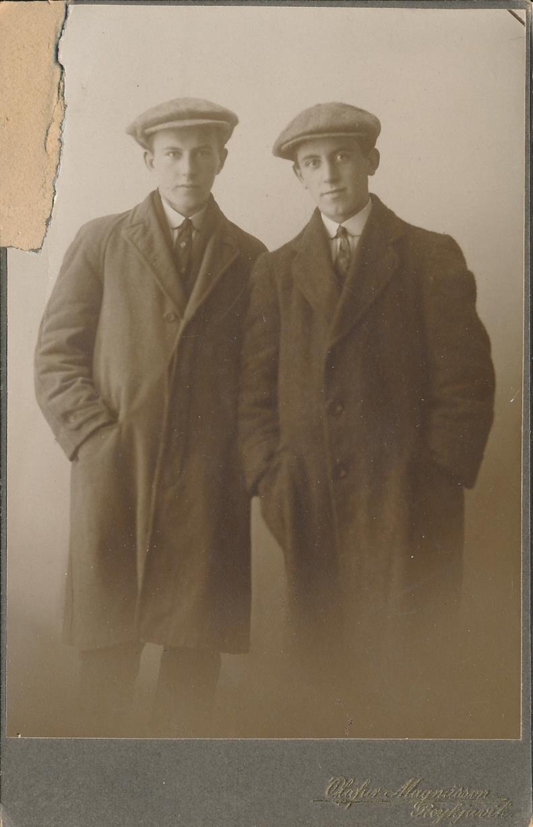 Ljósmynd úr fórum Snorra Ólafssonar frá Selfossi. Á myndinni eru líklaga bræðurnir Pálmar og Sigurður Ísólfssynir.