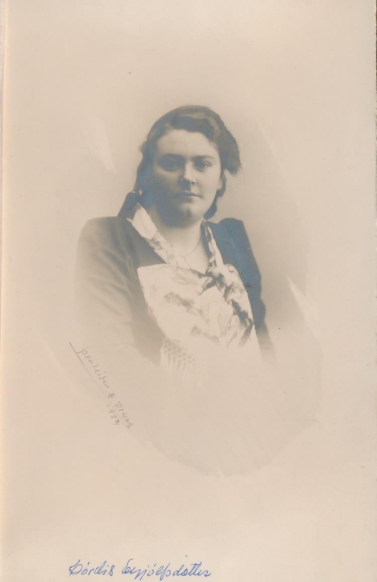 Ljósmynd úr fórum Snorra Ólafssonar frá Selfossi. Á myndinni er Þórdís Eyjólfsdóttir frá Skipagerði á Stokkseyri.