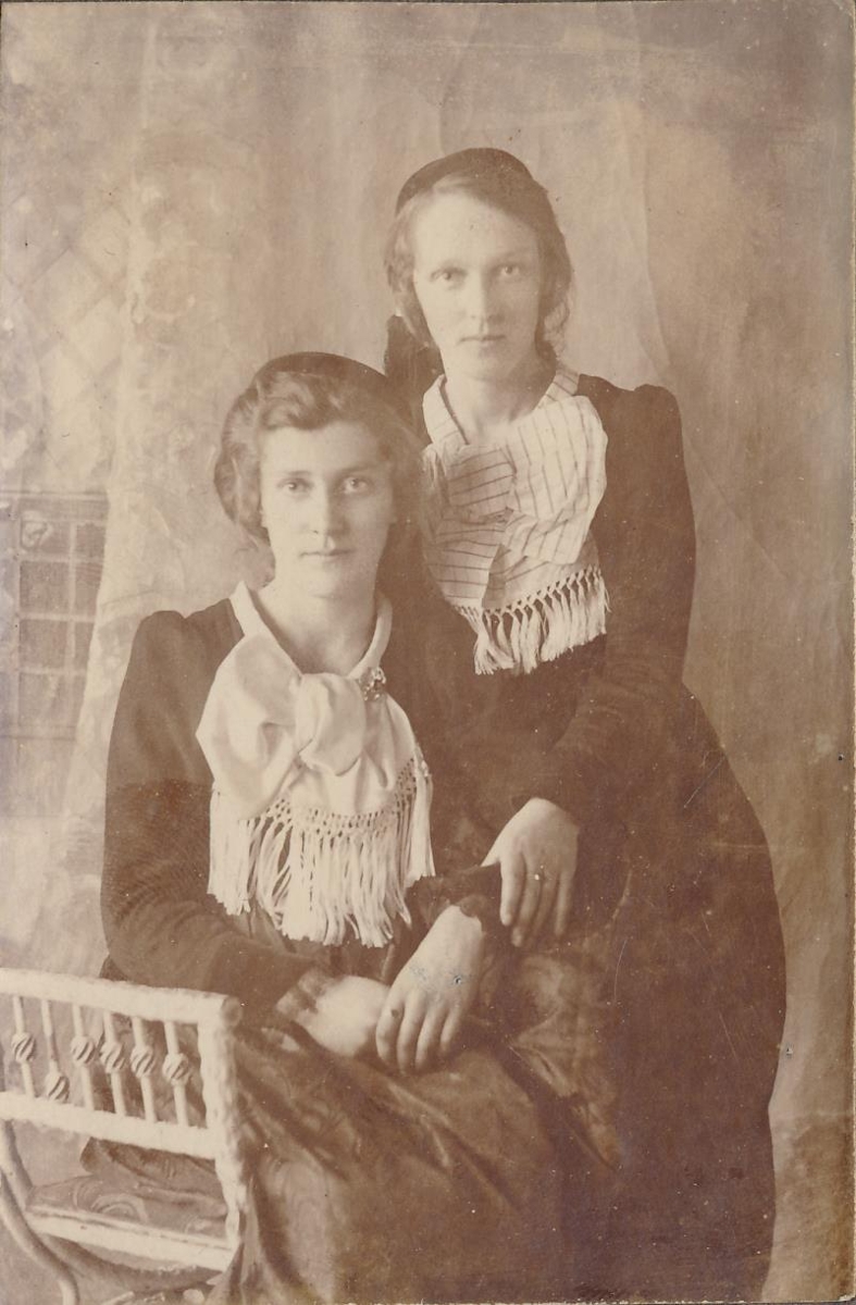 Ljósmynd úr fórum Snorra Ólafssonar frá Selfossi. Á myndinni eru Margrét og Ingveldur Jónsdætur frá Móhúsum á Stokkseyri. Ónafngreindur ljósmyndari.