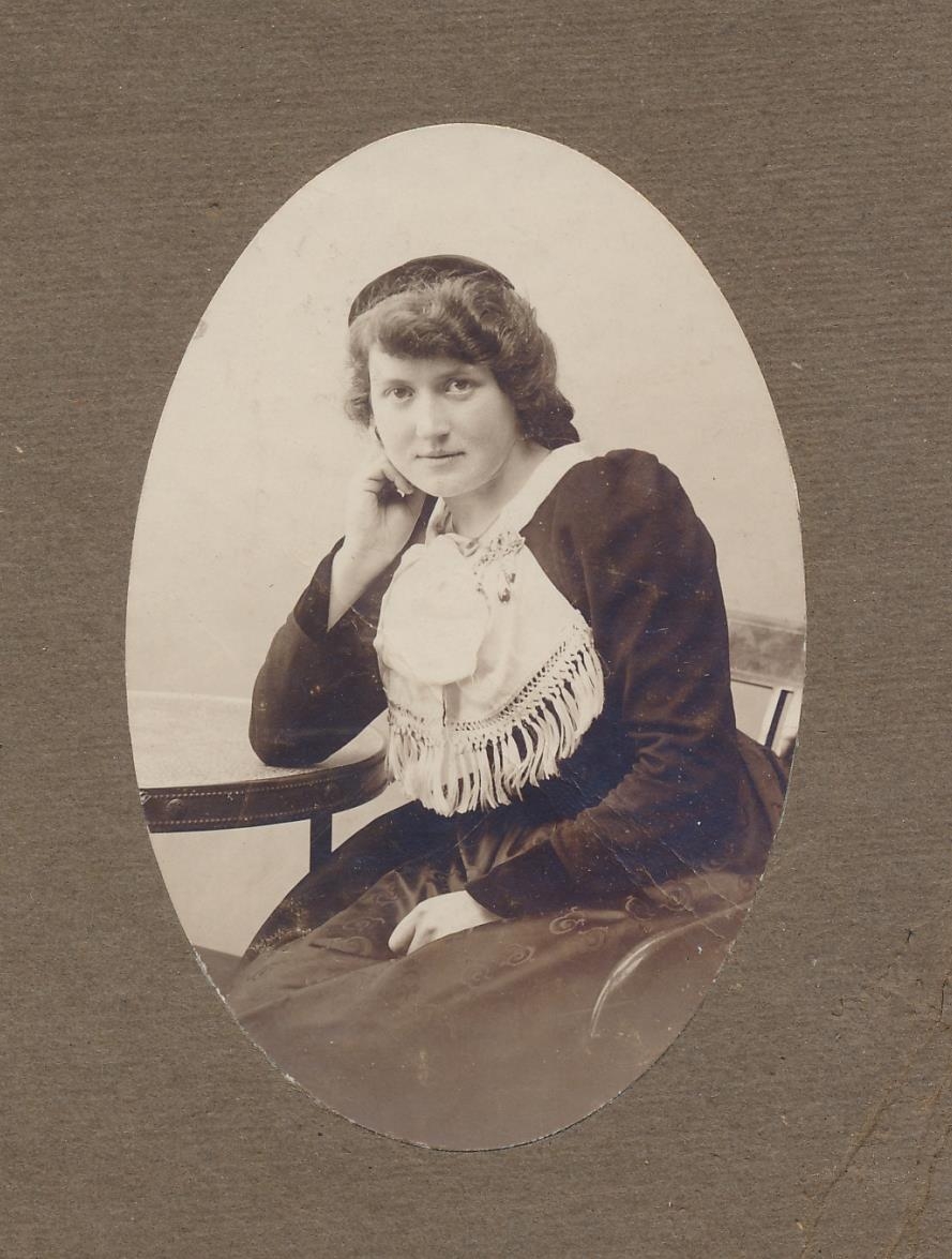 Ljósmynd úr fórum Snorra Ólafssonar frá Selfossi. Ámyndinni er Guðríður Sigurðardóttir frá Ranakoti á Stokkseyri.