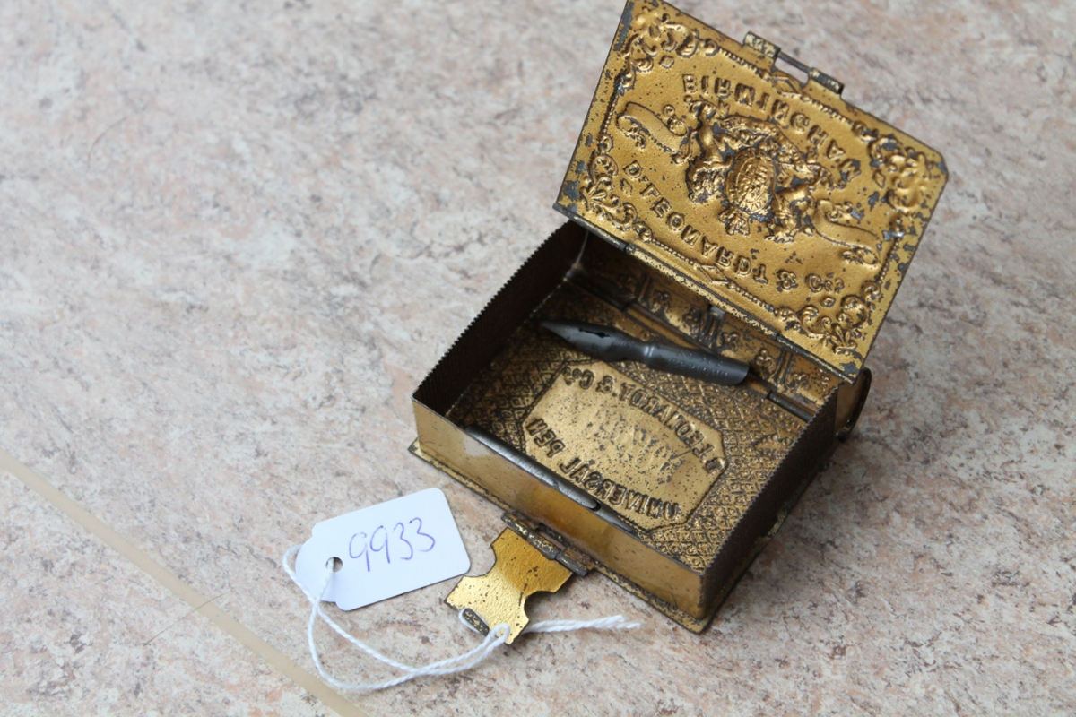 9933 Box með fjórum pennaoddum – Mál: 6,5 x 5,0 cm úr eigu Guðmundar Böðvarssonar sem skrifaði með þeim ungur maður.