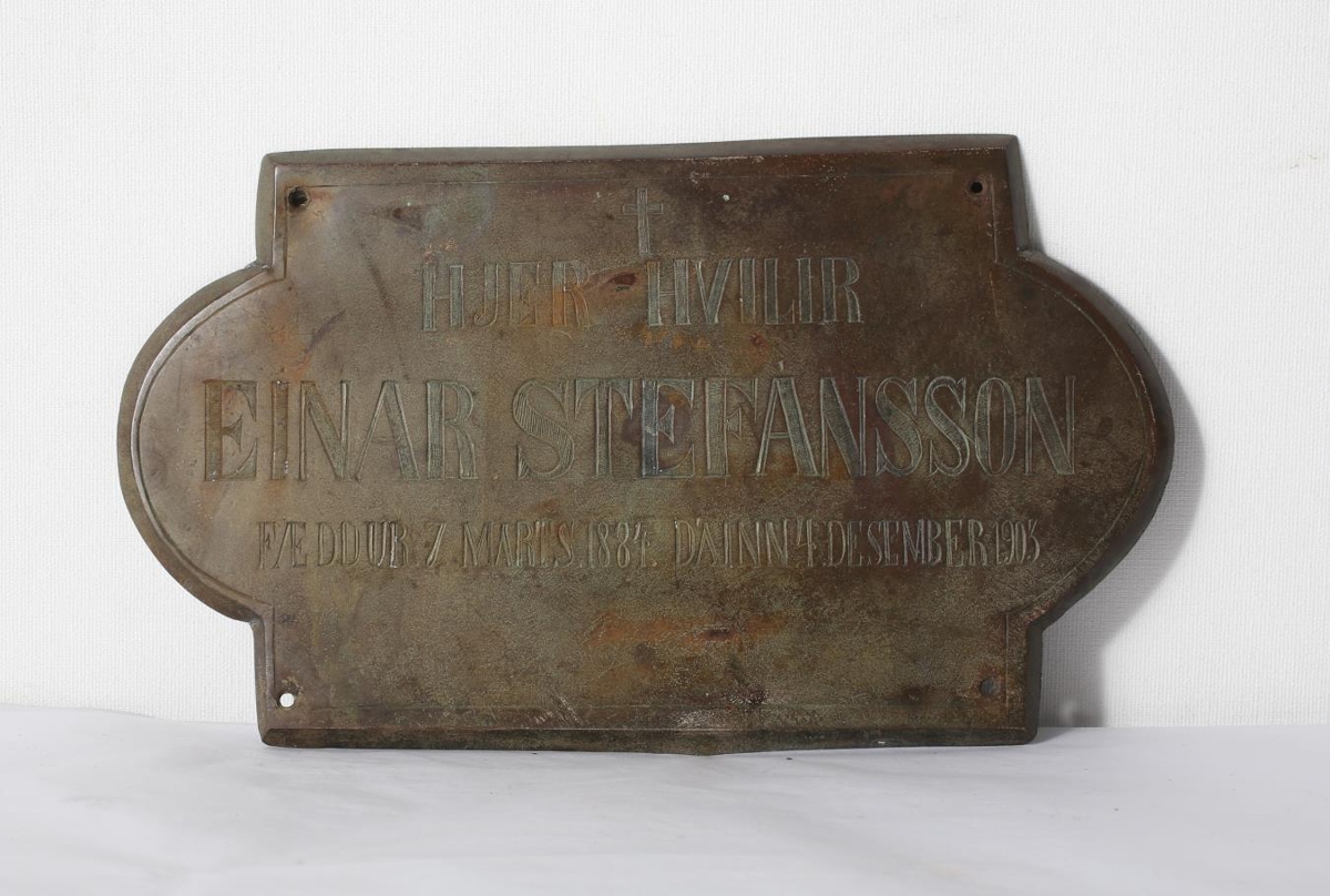 Á legstein. Grafskrift: "Hér hvílir Einar Stefánsson, fæddur 7. marts 1884. Dáinn 4. desember 1903". Var á leiði hans í Heydalakirkjugarði, en það er týnt fyrir nokkru. Var platan í kirkjunni þegar Kristinn kom þar. (G.H)