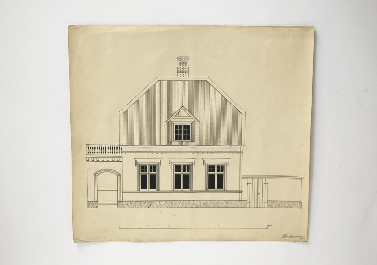 Fagteikning af húsi frá 30.10.1906. Úr eigu Vigfúsar Sigurðssonar frá Egilsstöðum í Fljótsdal (f.03.08.1880 d.13.09.1943).