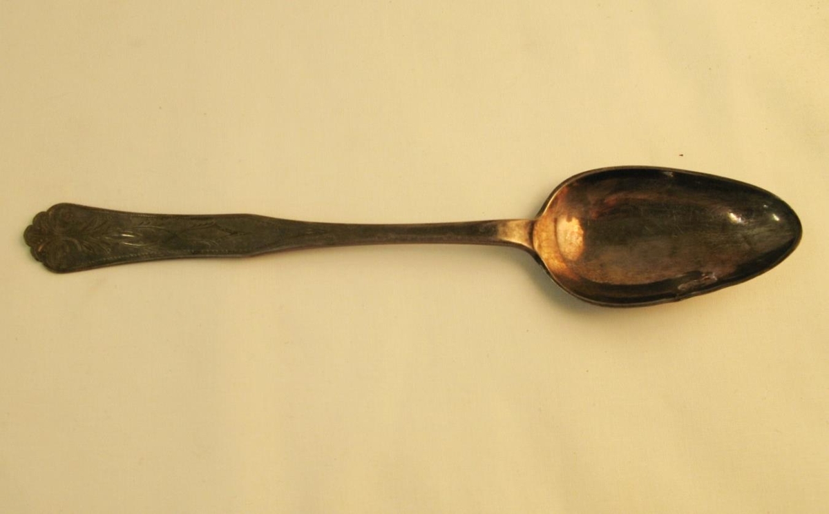 Matskeið úr silfri. Mynstruð á skafti. Aftan á henni er stimpill sem er líklega B.P. Úr eigu Vigfúsar Sigurðssonar (f.3.08.1880 d.13.09.1943) frá Egilsstöðum í Fljótsdal.