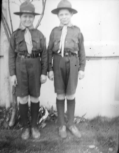 Tveir drengir í skátabúningum. 1) væntanlega Hilmar Fenger 2) Geir Agnar. Myndin er talsvert hreyfð.