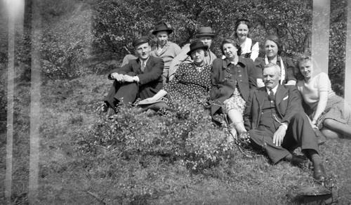 Stúdentsafmæli. (Efst frá vinstri) 1) óþekktur maður 2) Vigfús Einarsson skrifstofustjóri 3) Friðgerður Guðmundsdóttir, eiginkona Guðmundar Hanessonar (miðja frá vinstri) 4) óþekktur maður 5) óþekkt kona 6) Guðrún Sveinsdóttir seinni kona Vigfúsar 7) Hólmfríður 8) Herdís Vigfúsdóttir neðstur er 9) Guðmundur Hannesson.
