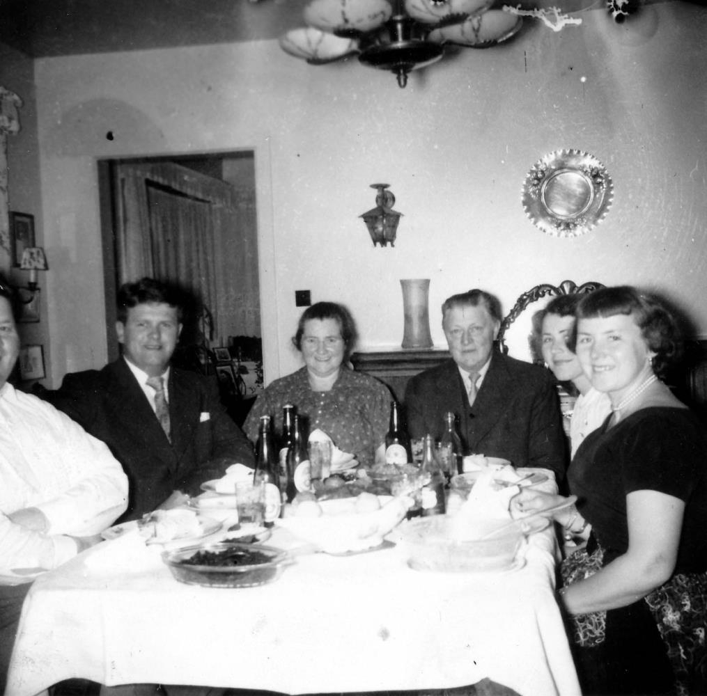 Matarboð í Þingvallastræti 20. Mikael, Lovísa og Jón.