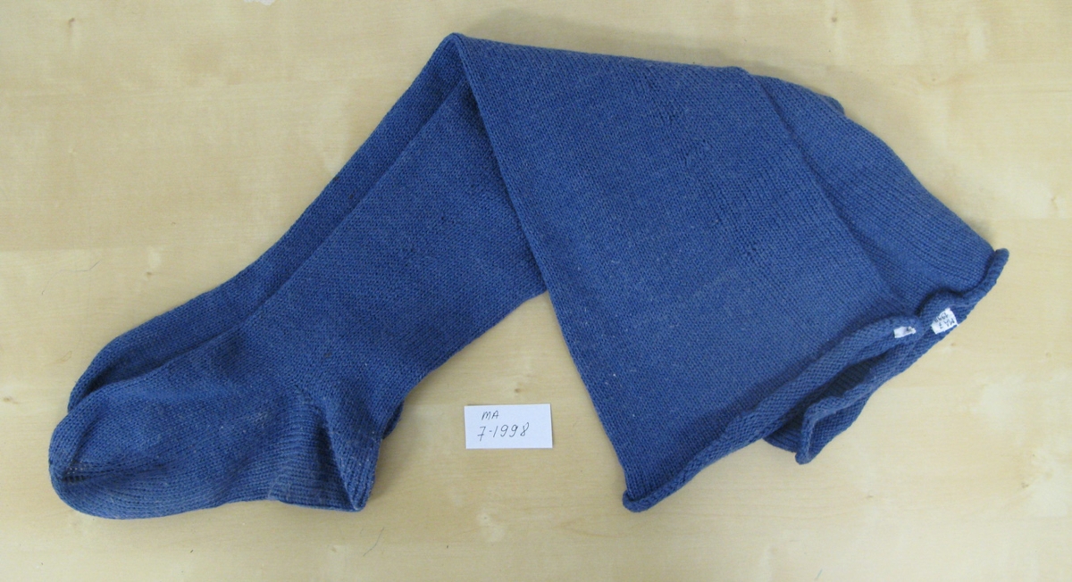 Bláir, háir sokkar, prjónaðir af Unu Brynjólfsdóttur frá Kórreksstöðum í Hjaltastaðaþinghá. Víkka upp og eru vélprjónaðir. Una var hálfsystir föður gefanda.