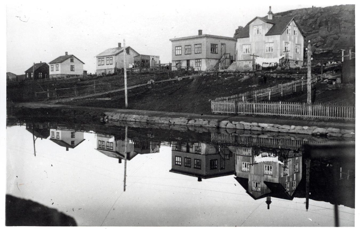 Mynd tekin um 1924 á móts við Syðri-Lækjargötu, lengst til vinstri sést í Gömlu-Gróf sem varð hluti af Bæjarbyggingunni og næst er hús sem nú telst til Öldugötu 2. Húsið gekk undir nokkrum nöfnum, s.s. Kvennabrekka, Bygggarður, Svarta húsið og Rauða húsið. Þá kemur Lækjargata 16, Busthús, svo Geitháls númer 14 og Kassahúsið Lækjargata 12. Þar bjuggu lengst af ljósmyndarahjónin Guðbjartur Ásgeirsson og Herdís Guðmundsdóttir en í kjallaranum höfðu þau aðstöðu fyrir amatörvinnustofu sína. Kassahúsið var það nefnt vegna útlitsins en hjónin létu hækka þakið í núverandi mynd árið 1925. Við hliðina á Kassahúsinu er Lækjargata 10. Það hús byggði Jóhann Jónsson skipstjóri, hann fór sem háseti á kútter „Kjartan“ sem var í eigu Brydeverslunarinnar á meðan verið var að gera við skip hans, kútter „Pollux“. Jóhann tók út ásamt skipstjóranum á kútter „Kjartani“ og drukknuðu báðir. Var Jóhanni skipstjóra lýst sem „lipurmenni og gæðasjómanni“.