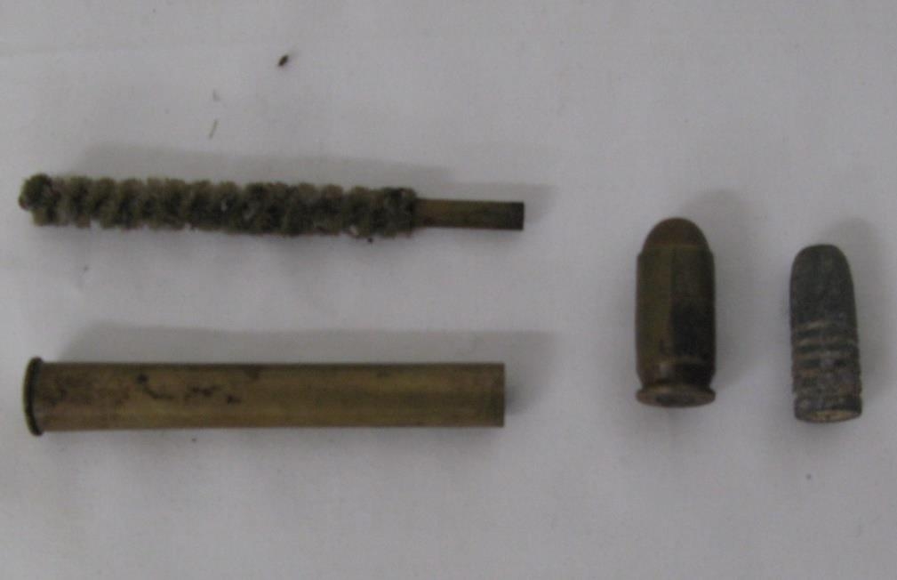 4,5 Acp. Einnig patróna 9,3x72D. Blýkúla 10mm og hreinsibursti.