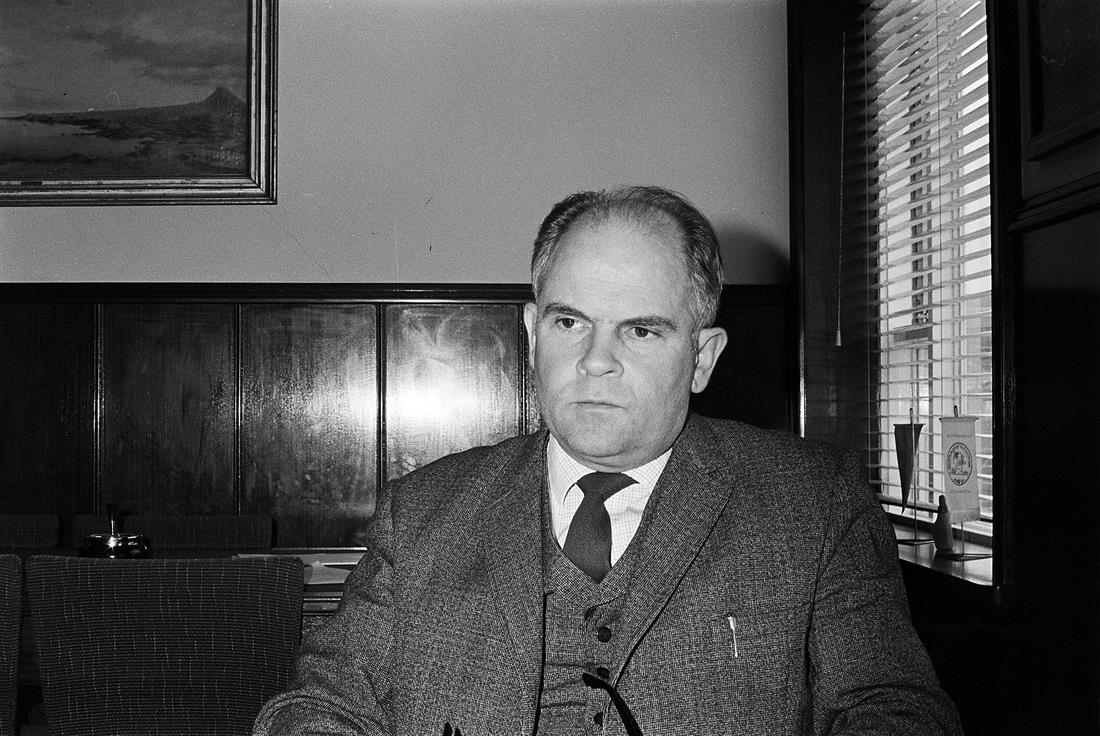 Vestmannaeyjar 1969. Magnús Helgi Magnússon bæjarstjóri í Vestmannaeyjum.